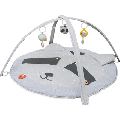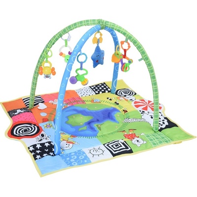 Hrací podložka s hrazdou Tato hrací podložka s hrazdičkou a třemi zavěšenými hračkami zaručuje hodiny hraní! Zrcátko, dřevěné kroužky, chrastítko, šustivý papír, zábavné třásně...
