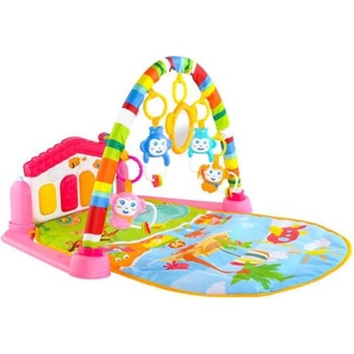 Hrací Podložka Pro Miminka s Pianem, Chrastítkem, Kousátkem, Zrcátkem a Zvukem - Růžová Podložka může doprovázejte dítě od prvních dnů jeho života a podporovat jeho vývoj....