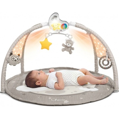 Příjemná hrací deka s přídavnými oblouky, na které se uchytí až pět přídavných hraček, které zabaví vaše děťátko v leže i na bříšku.
