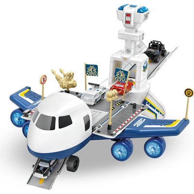 Multifunkční model transportního letadla. Včetně příslušenství - autíčka, značky, hrací podložka