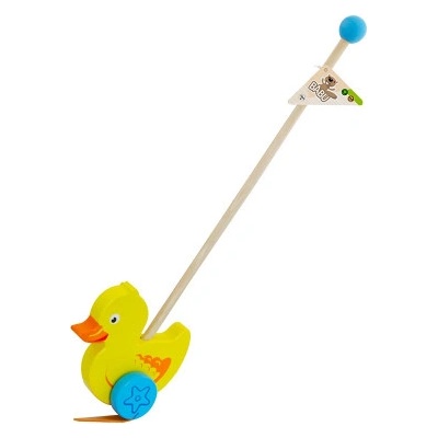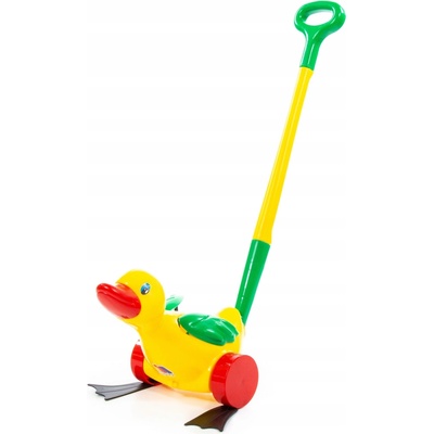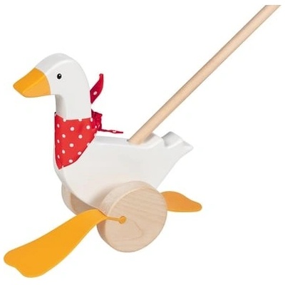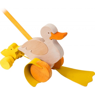Pokud dítě tlačí tuto hračku, tak kačenka plácá nohama o podlahu. Dítě tlačí hračku před sebou na tyči. Vodící dřevěnou tyč lze z hračky jednoduše odšroubovat - dítě si tak...