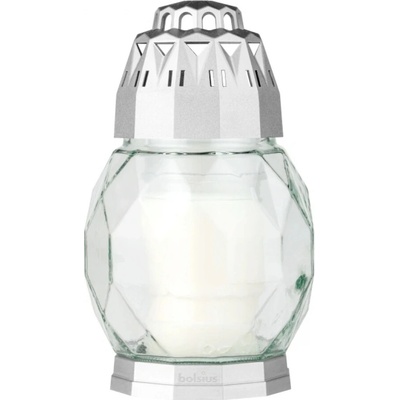 Lucerna Bolsius stříbrná borovice vnese na pietní místo klid, eleganci a jemnou symboliku. Její pevné skleněné tělo s jemným motivem propouští světlo v teplých odstínech a...