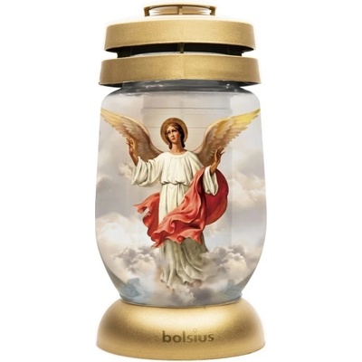 Skleněná hřbitovní lucerna s motivem anděla a vkladem na 24 hodin. Důstojná a odolná vzpomínka.