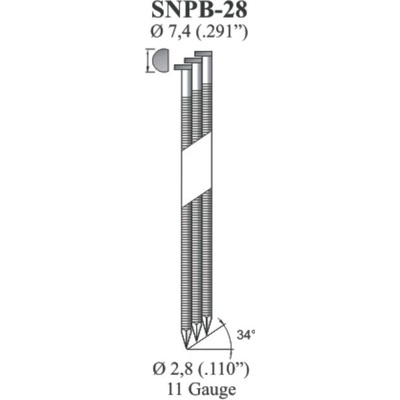 Technické údaje: - Typ hřebíku: kroužkový, pásové provedení - Úhel spoje: 34° - Spojení: papírový pás - Tloušťka hřebíku: 2,8–3,4 mm - Délky hřebíků: 50 / 64 / 75 / 80...