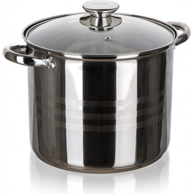 Nerezový hrnec AKCENT 9 l, rozměry hrnce - průměr 24 cm, výška 20,5 cm, skleněná poklice, nerezový knob i držadla, vnější i vnitřní povrchová úprava lesk. Hrnec lze používat na všechny typy varných desek vč.indukce.