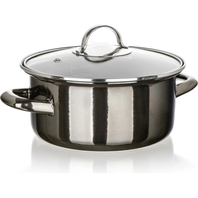 Hrnec + skleněná pokice, pr. 20 cm, 2 l, METALLIC Black. průměr: 20 cm výška (bez poklice): 9 cm objem: 2 l černá metalíza Smaltovaný hrnec METALLIC Black se skleněnou...