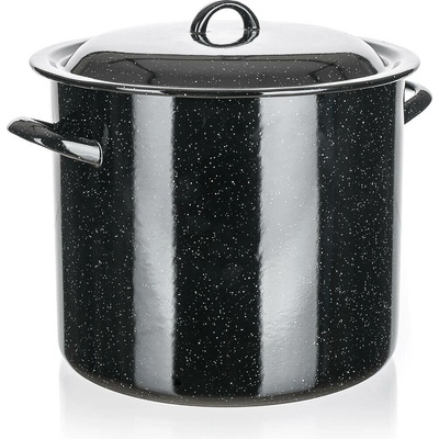 Smaltovaný hrnec s poklicí 3 l, rozměry: průměr 18 cm, výška 14,5 cm. Hrnec lze používat na všechny typy varných desek mimo indukce.
