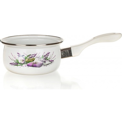 Rendlík LAVENDER 14 cm, 0,65 l, dlouhá rukojeť. objem: 0,65 l průměr 14 cm výška 7 cm materiál: smalt, bakeliová rukojeť Smaltovaný rendlík LAVENDER. Bílá glazura, dekor...