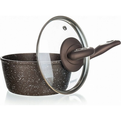 Hliníkový litý hrnec se skleněnou termo poklicí a aroma knobem PREMIUM DARK BROWN s nepřílnavým povrchem, 28x12,5 cm, hnědý granitový dekor, tloušťka stěny 2,2 mm, plně...