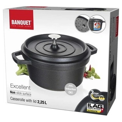 Hrnec s nepřilnavým povrchem a poklicí "Granite II" 24cm 5L - značky BANQUET BANQUET je značka, která nabízí kompletní sortiment domácích potřeb, skla, porcelánu a keramiky....