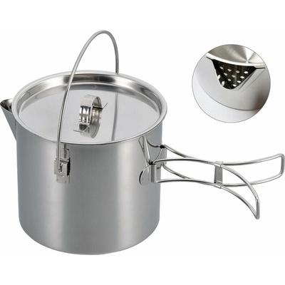 nerezový multifunkční hrnec Lehká a robustní konvice na čaj a hrnec na vaření v jednom z vysoce kvalitní nerezové oceli. Má velkou rukojeť, sklopné úchyty a hrubé sítko ve...