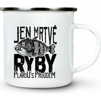 Jen mrtvé ryby plavou s proudem, černý potisk. Rybářské tričko, mikina, zástěra, kšiltovka. Ideální dárek pro rybáře , tátu, dědu, bráchu, kamaráda. Typ výrobku: Plechový hrnek