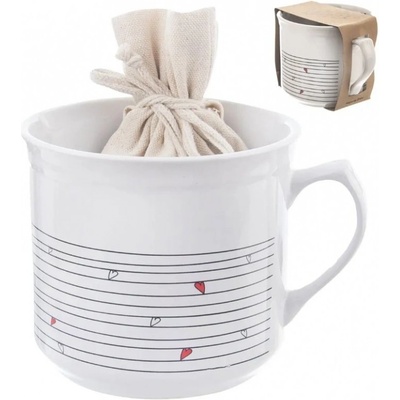 Vyzdobte kuchyni novým designem. Porcelánový hrnek o objemu 500 ml s motivem srdíček a puntíků doplňte o prostírání, ubrus, povlak na polštářek nebo třeba podsedáky. árkovém...