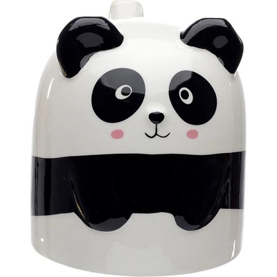 Keramický hrnek s pandou. Hrníček panda je bílé barvy a ve tvaru hlavy pandy. Ucho je bílé barvy. Hrnek je ve stylu vzhůru nohama, kdy se z něj pije tak, že pandu je nutné...