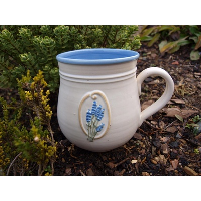 Hrnek s jemným ručně malovaným dekorem levandule, na kafíčko. Obsah 0,5l Ručně točený. Z jemné bílé kameniny, pálený na 1250 stupňů. Dekorovaný jemným reliéfem. Lze použít...