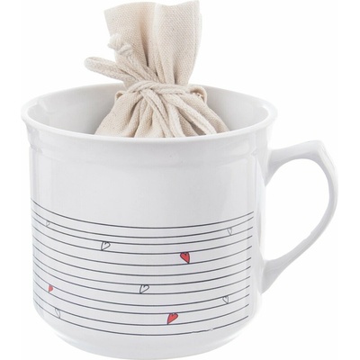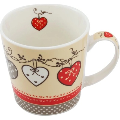 Vyzdobte kuchyni novým designem. Porcelánový hrnek o objemu 500 ml s motivem srdíček a puntíků doplňte o prostírání, ubrus, povlak na polštářek nebo třeba podsedáky. árkovém...