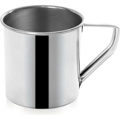Hrnek s uchem. Materiál: nerez. Rozměry: pr. 10 cm, objem 0,65 l.