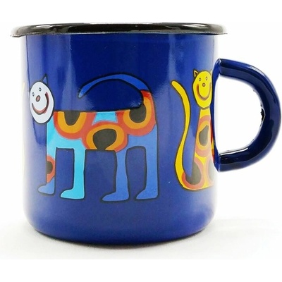 Smaltum Smaltovaný hrnek Kočky modrý autorský motiv plecháček 350 ml