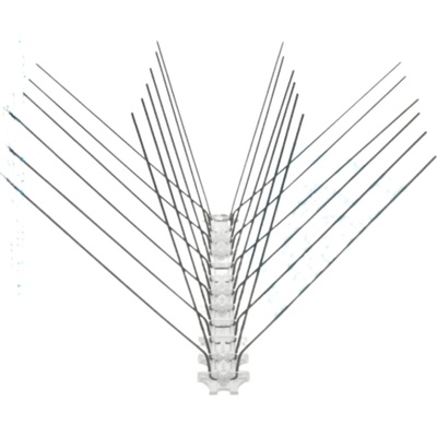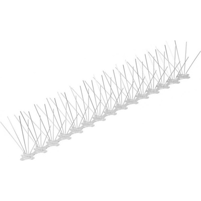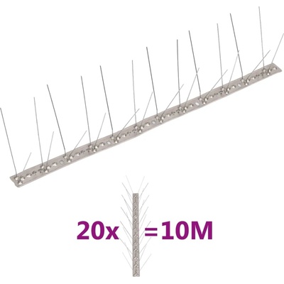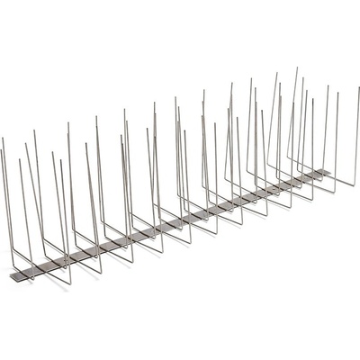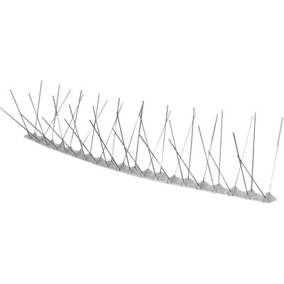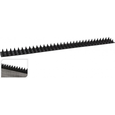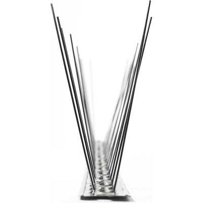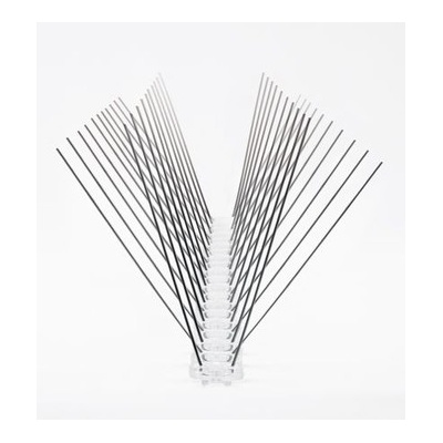 40 kovových hrotů na ohebném plastovém pásku. Pásek může být instalován na lepidlo a hřebíky nebo šrouby. Ochrana pro ploty, zábradlí, římsy, parapety, hřebeny, klimatizace,...
