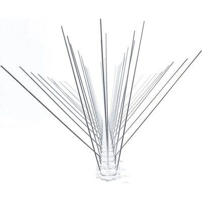 Ochranné nerezové hroty proti ptactvu o rozměru 50x10cm se 40-ti hroty. Spodní plastové uchycení: 2,3cm. Zabraňují dosedání ptákům na římsy, parapety, okapy atd. Hroty jsou vhodné i proti jinému ptactvu např. vlaštovky, sýkorky, atd.