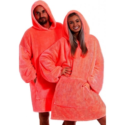 Reflexní oranžovo růžová veliká huňatá klokaní mikina župánkový styl, pro ženy i muže UNI Huňatá klokanka má kapuci, rukávy do nápletu a velkou klokaní kapsu, kde zahřejete i...