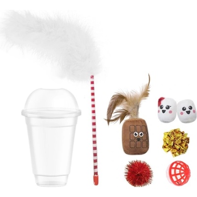 Sada 7 různých hraček pro kočky ve vánočním kelímku.