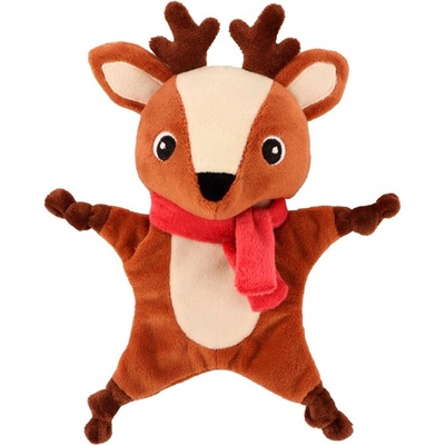 Huhubamboo vánoční sob s červenou šálou 20 cm. Rozměry hračky jsou 200x200x50 mm.