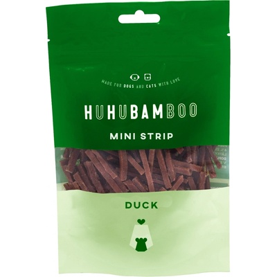 Huhubamboo kachní mini proužky 75g Masové pamlsky. Doplňkové krmivo pro dospělé kočky. Bez barviv a přidaného cukru Posiluje žvýkací svaly. Vhodná odměna k upevnění vztahu se...