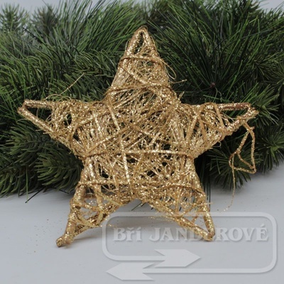 Vánoční hvězda proutěná červená se třpytkami a provázkem na zavěšení o průměru 15 centimetrů. Využije jak na zavěšení, tak jako dekoraci na věneček, kam uchytíte pomocí tavného...