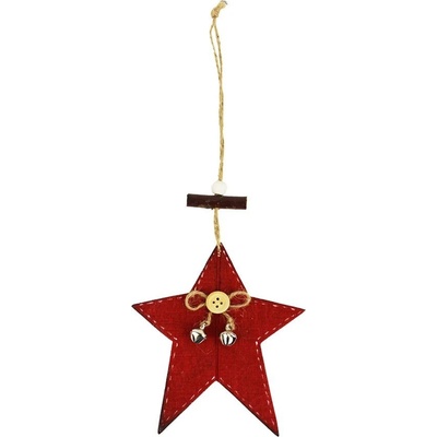 Dekorační hvězda k zavěšení. Rozměry: 11 x 0,5 x 13 cm. Materiál: dřevo. Barva: červená. Tento výrobek není hračka.