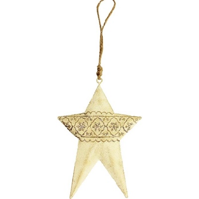 Velice hezká hvězda k zavěšení. Rozměry: 8,5 x 1 x 12,5 cm. Materiál: kov. Barva: krémová. Tento výrobek není hračka. Určeno do vnitřních prostor.