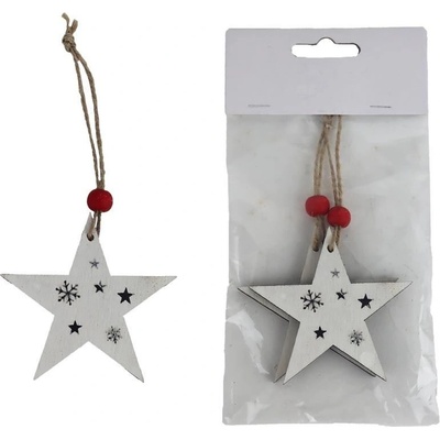 Sada dekoračních hvězd k zavěšení. Sada obsahuje 2 hvězdičky. Rozměry: 7 x 0,5 x 7 cm. Materiál: dřevo. Barva: bílá. Tento výrobek není hračka. Plastový obal odstraňte z...
