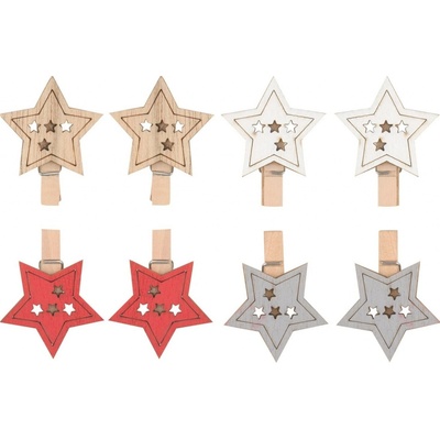 Sada dekoračních hvězdiček. Rozměry: 7,5 x 7,5 x 3 cm. Materiál: přírodní. Barva: krémová. Není hračka. Plastový obal odstraňte z dosahu dětí. Hrozí udušení.