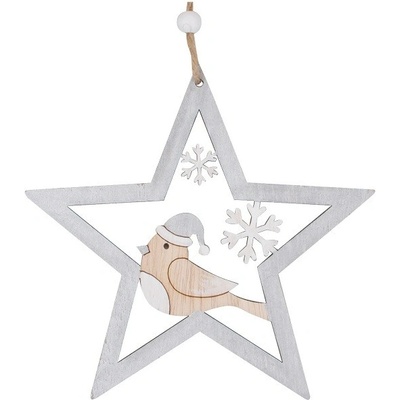 Anděl Přerov s.ro. Hvězda s ptáčkem na zavěšení 14 cm stříbrná