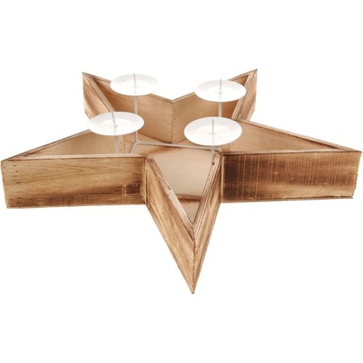 Dřevěný svícen ve tvaru hvězdy. Krásná dekorace pro Váš interiér. Součástí jsou 4 kovové bodce na svíčky.