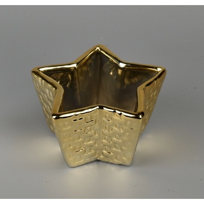 Miska hvězda keramická vroubkovaná, barva zlatá. Výška 9 cm, šířka 9,5 cm
