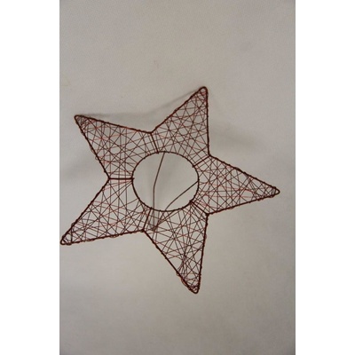 Hvězda vyrobená z vrbového proutí, s drátěným očkem na zavěšení. Barva bílá. Rozměry: d 25 x š 25 x v 2 cm