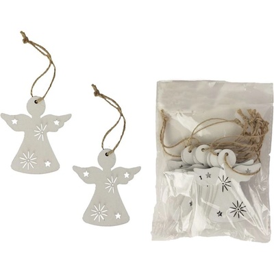 Sada dekoračních andílků k zavěšení. Sada obsahuje 10 andílků. Rozměry : 6,5 x 0,3 cm, výška 7 cm. Barva : bílá. Materiál na bázi dřeva.