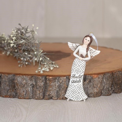 Dekorační anděl k zavěšení. Rozměry: 5,5 x 0,8 x 12 cm. Materiál: polyresin. Barva: bílá, černá. Tento výrobek není hračka.
