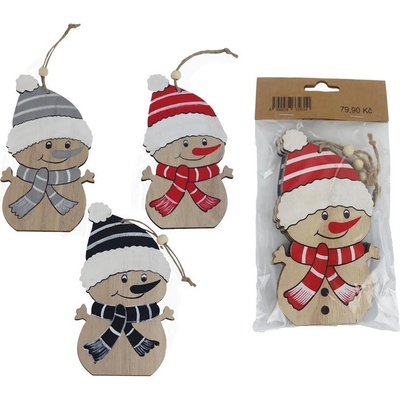 Sada dekoračních sněhuláků k zavěšení. Sada obsahuje 3 sněhuláky. Rozměry: 7,5 x 0,5 x 14,5 cm. Materiál: dřevo. Barva: přírodní, bílá, červená, šedá, černá. Tento výrobek...