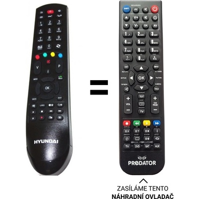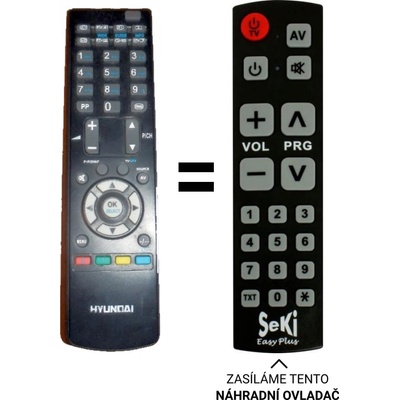 POUZE ZÁKLADNÍ FUNKCE. Náhradní dálkový ovladač BEZ ZADÁVÁNÍ KÓDŮ. Pro televizory Hyundai, které měli vyobrazený originální ovladač