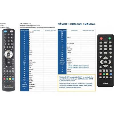 Náhradní dálkový ovladač HYUNDAI DVB4H531PVR - 100% náhrada 1:1 za originální dálkový ovladač. Dálkový ovladač byl vyvinut speciálně na míru pro tyto modely značky HYUNDAI:DVB...