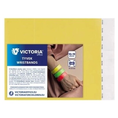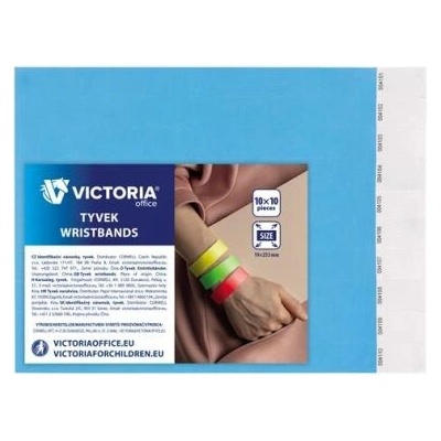uzavírání lepicím páskem délka: 253 mm šířka: 19 mm popisovatelná délka: 150-200 mm (závisí na velikosti zápěstí) popisovatelná šířka: 15 mmBalení obsahuje 100 ks náramků.Doplňující popis: