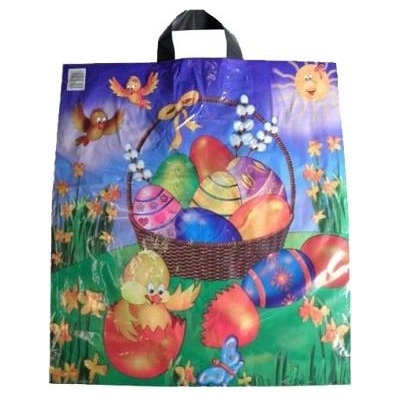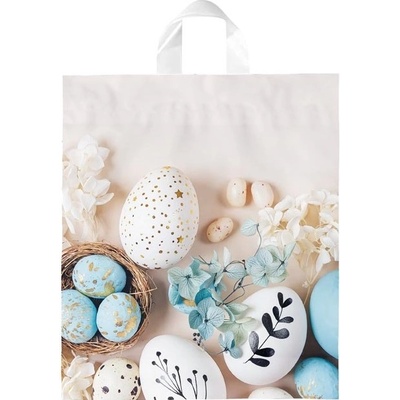 Celoplošně potištěná igelitová taška s motivem velikonočních vajíček a navařeným uchem. Síla igelitky: 0,050 mm Uvedená cena je za 1 ks. Vlastnosti: Šířka: 390 mm...
