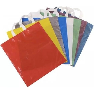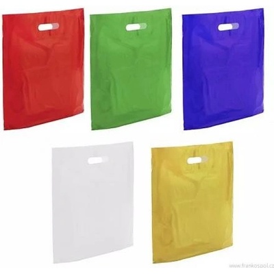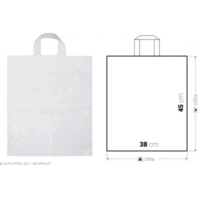 Taška s navařeným páskovým uchem, vyrobena z pevné igelitové folie, je vhodná i k potisku. Tloušťka 40 mic. Cena za ks.