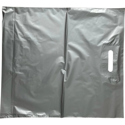 Je plastová, vyrobená z LDPE fólie. Používá se pro přepravu nejrůznějšího zboží. rozměry:45 x 50 + 9 cm barva: stříbrná ZUD = zpevněný průhmat a složené dno materiál:...