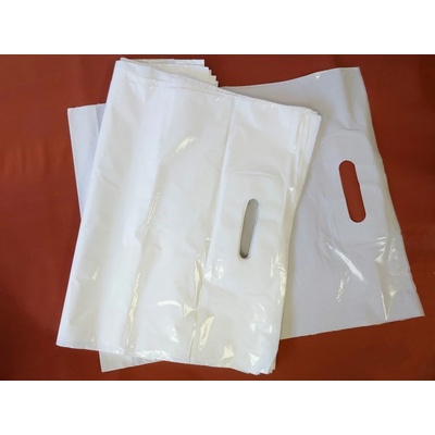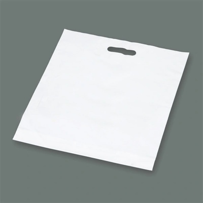 Taška igelitová s průhmatem LDPE BÍLÁ. Igelitová taška s vyztuženým průhmatem bílé barvy, síla fólie je 40 mikronů, materiál LDPE, cena za kus.