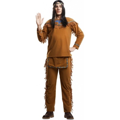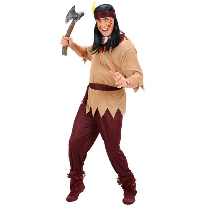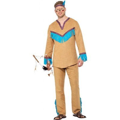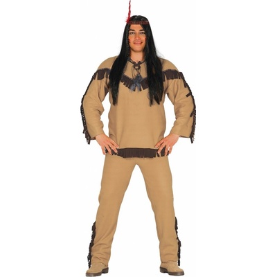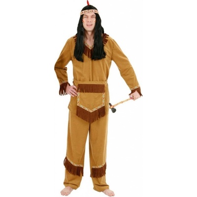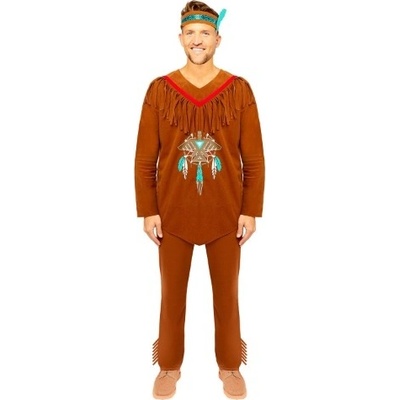 Pánský karnevalový kostým severoamerického indiána. Velikost: S Materiál: 100% polyester Kostým indián obsahuje: halena, kalhoty, čelenka