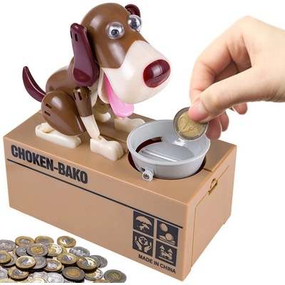 Interaktivní pes na peníze, který jí mince. s takovou pokladničkou se dítě naučí, co je to spoření. Pokladnička může být vynikajícím dárkem k narozeninám kolegy nebo kamaráda....