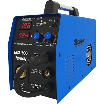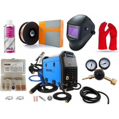 Mega set svářečka DIGIMIG 200 Synergic Sherman umí svařovat metodami MIG/MAG, MMA, TIG Lift. Je to synergická svářečka , kde je možnost přepnutí do manuálního svařování. -...